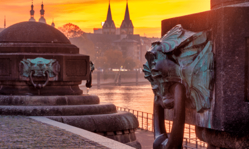 Today, we depart for a short visit to Koblenz to encounter Deutsches Eck, the confluence of the Rhine and Moselle, and a local church visit. This afternoon, we journey to Frankfurt and check into our city-center hotel with free time to explore Frankfurt’s old town, Römerberg, and Main riverfront.